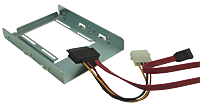 Converts the form factor of any 2.5" hard drive to a 3.5" form factor and Converts the drive connector to a standard SATA data connector and 4 pin power connector. Kit includes bracket, hardware, and adapter cable.